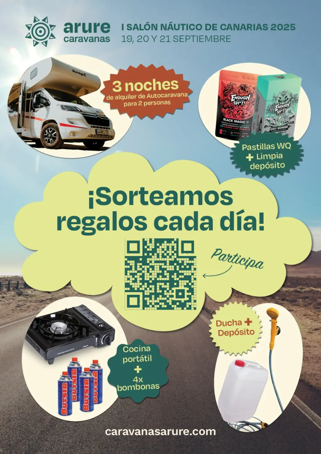 Caravanas Arure, S.L. organiza el sorteo denominado “Sorteo Diario de Accesorios de Camping y Náutica” (en adelante, “el Sorteo”), accesible a través de su página web https://www.caravanasarure.com/sorteo-salon-nautico-2025-formulario-nuevos-clientes.